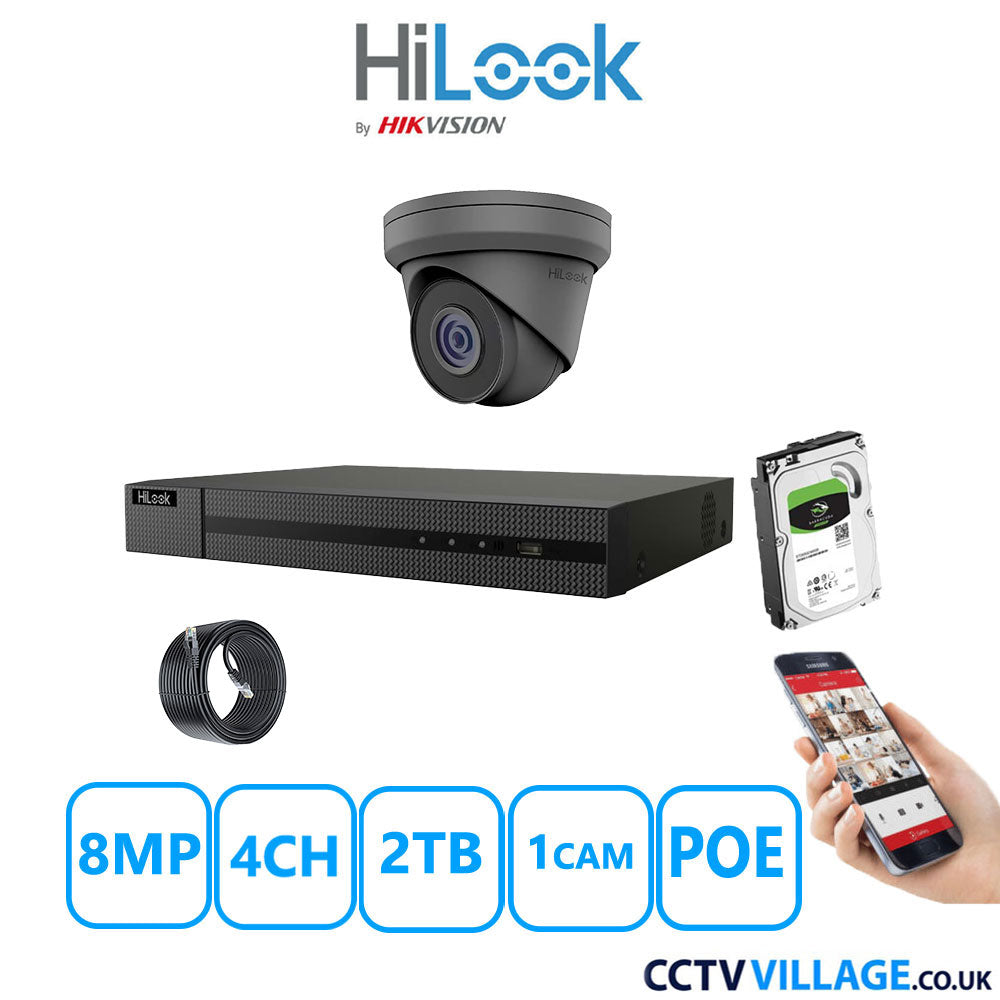 1x HiLook 8MP camera in Grey (IPC-T280H-MUF)