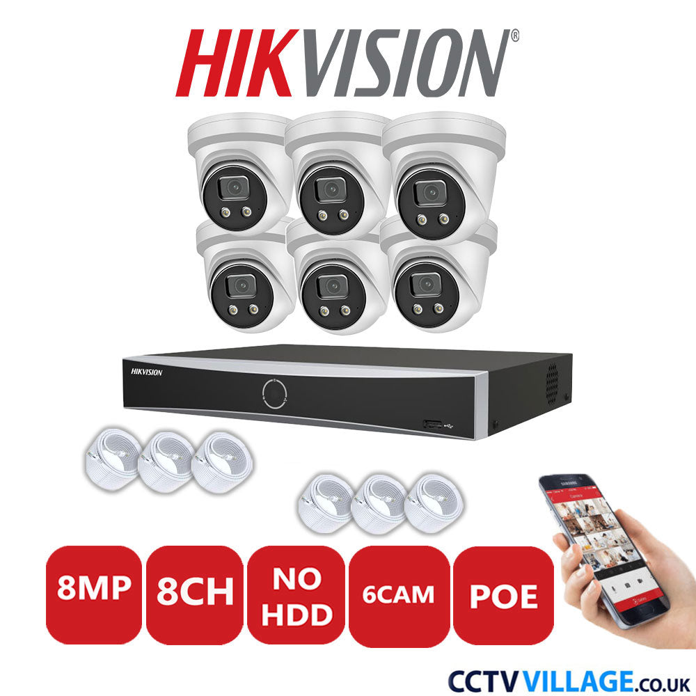 6x Hikvision 8MP cameras in White (DS-2CD2386G2-IU)