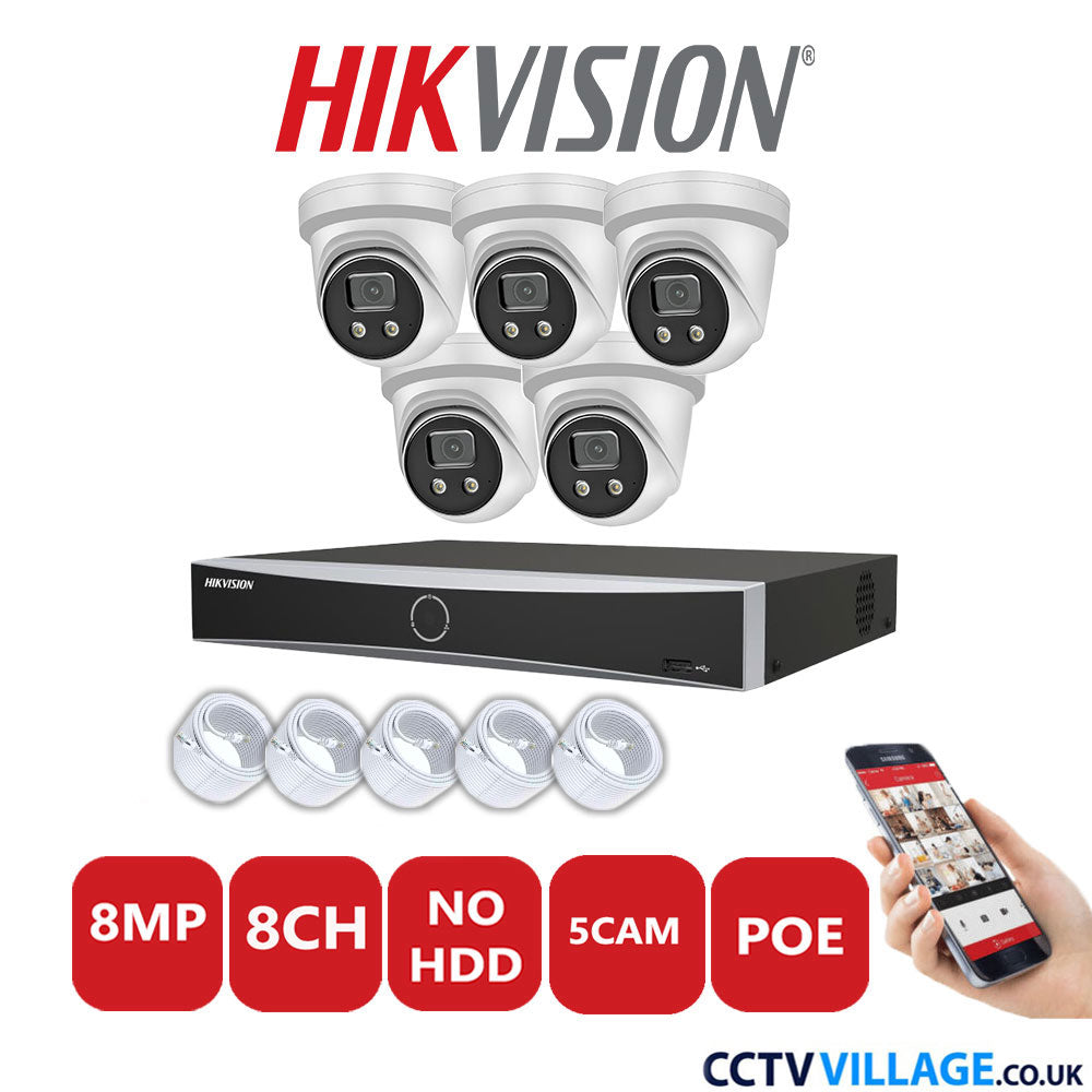 5x Hikvision 8MP cameras in White (DS-2CD2386G2-IU)
