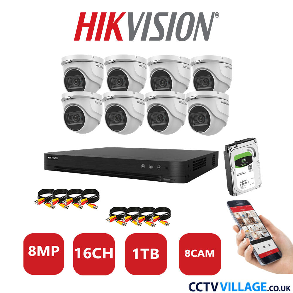 8x Hikvision 8MP cameras in White (DS-2CE76U1T-ITMF)