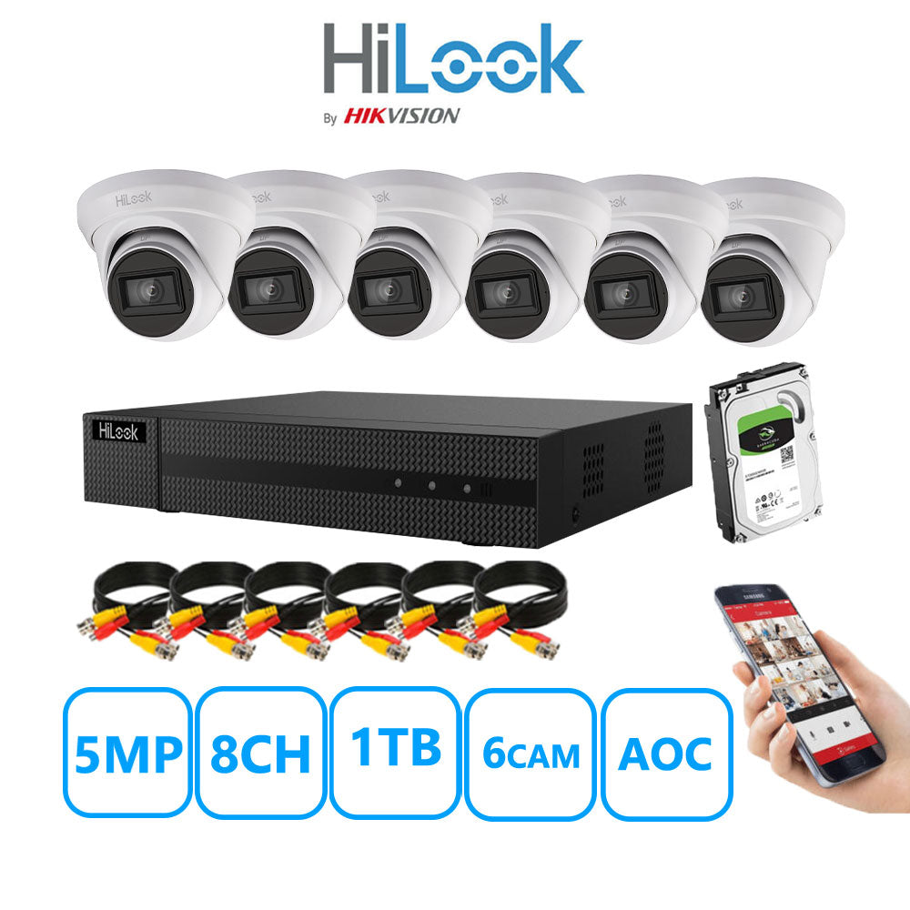 6x HiLook 5MP cameras in White (THC-T250-MS)