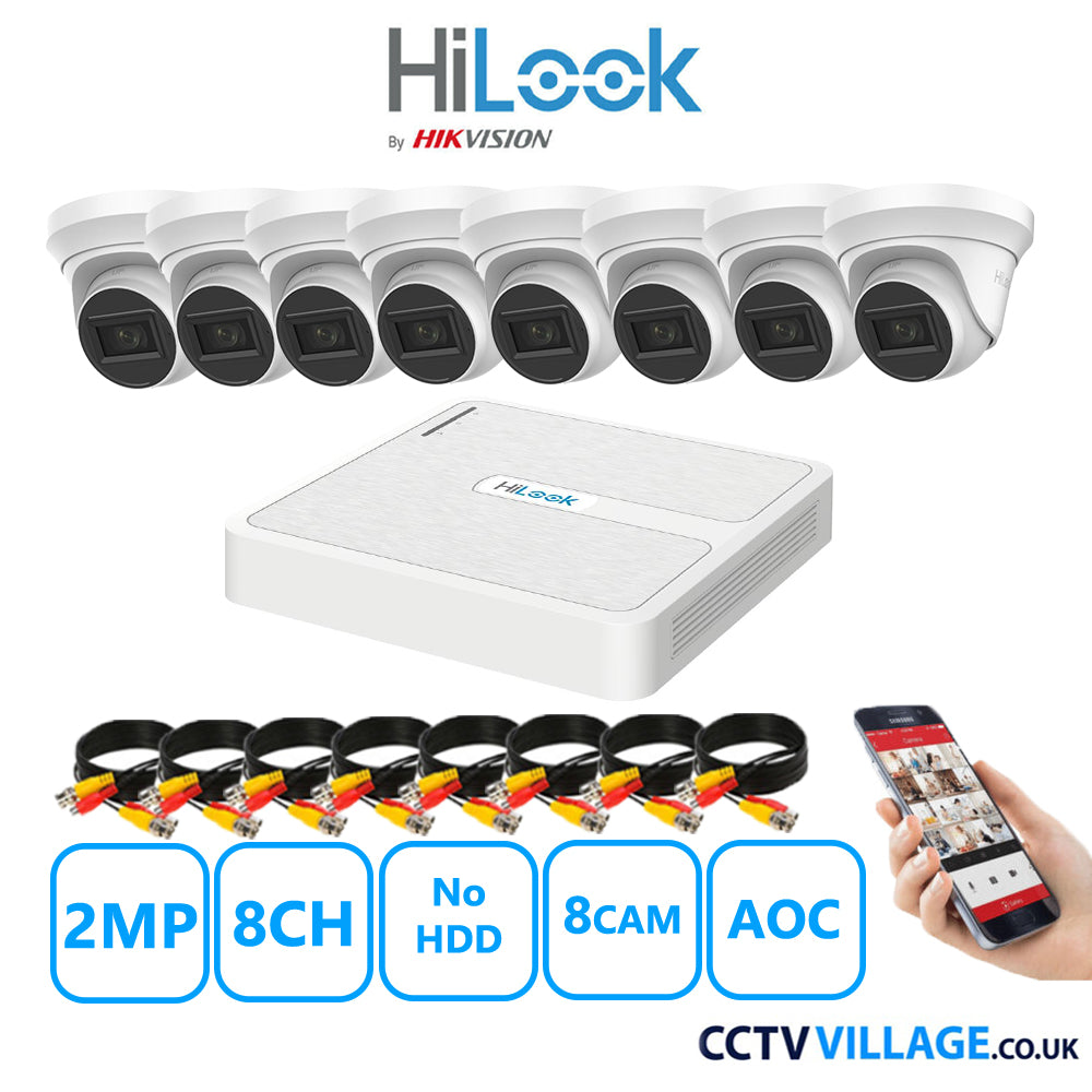 8x HiLook 2MP cameras in White (THC-T220-MS)