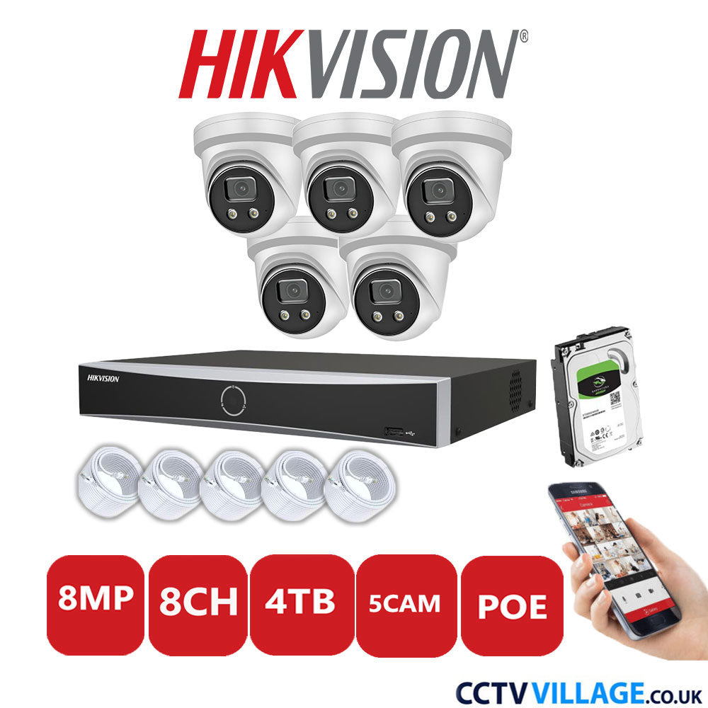 5x Hikvision 8MP cameras in White (DS-2CD2386G2-IU)