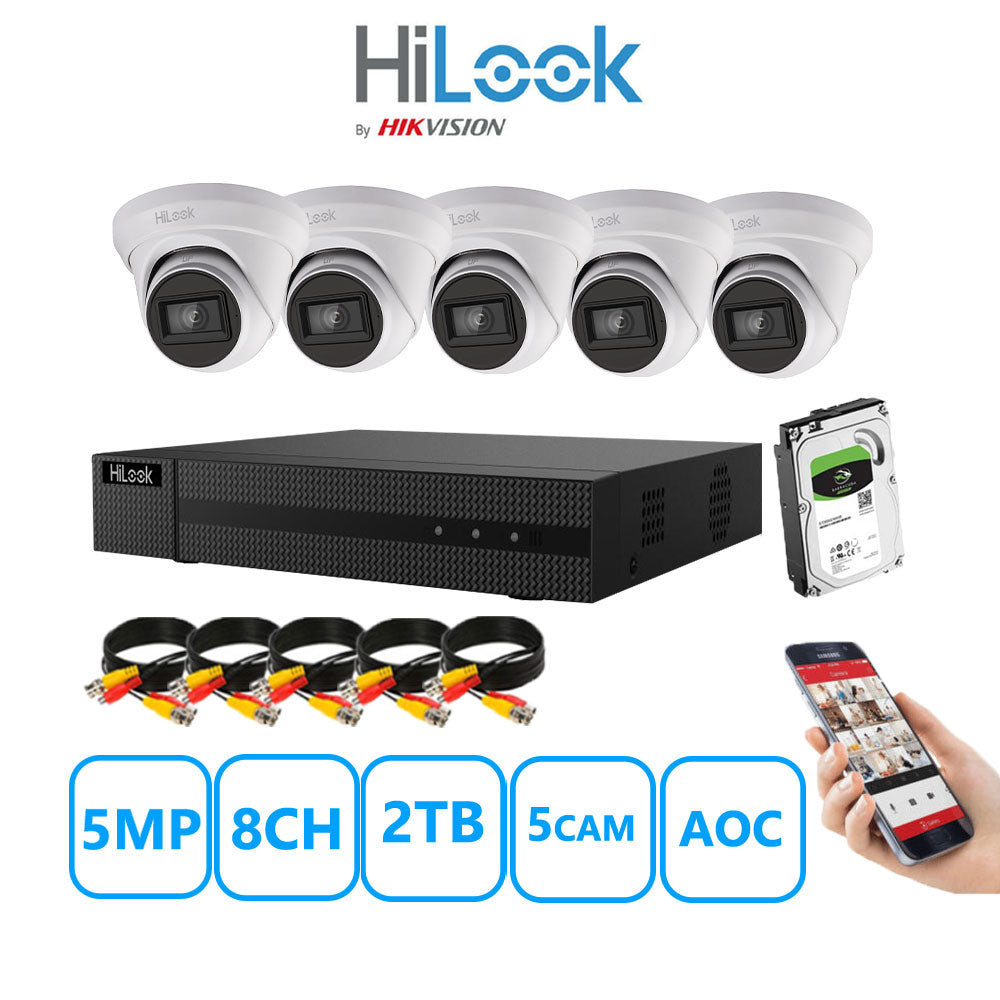 5x HiLook 5MP cameras in White (THC-T250-MS)