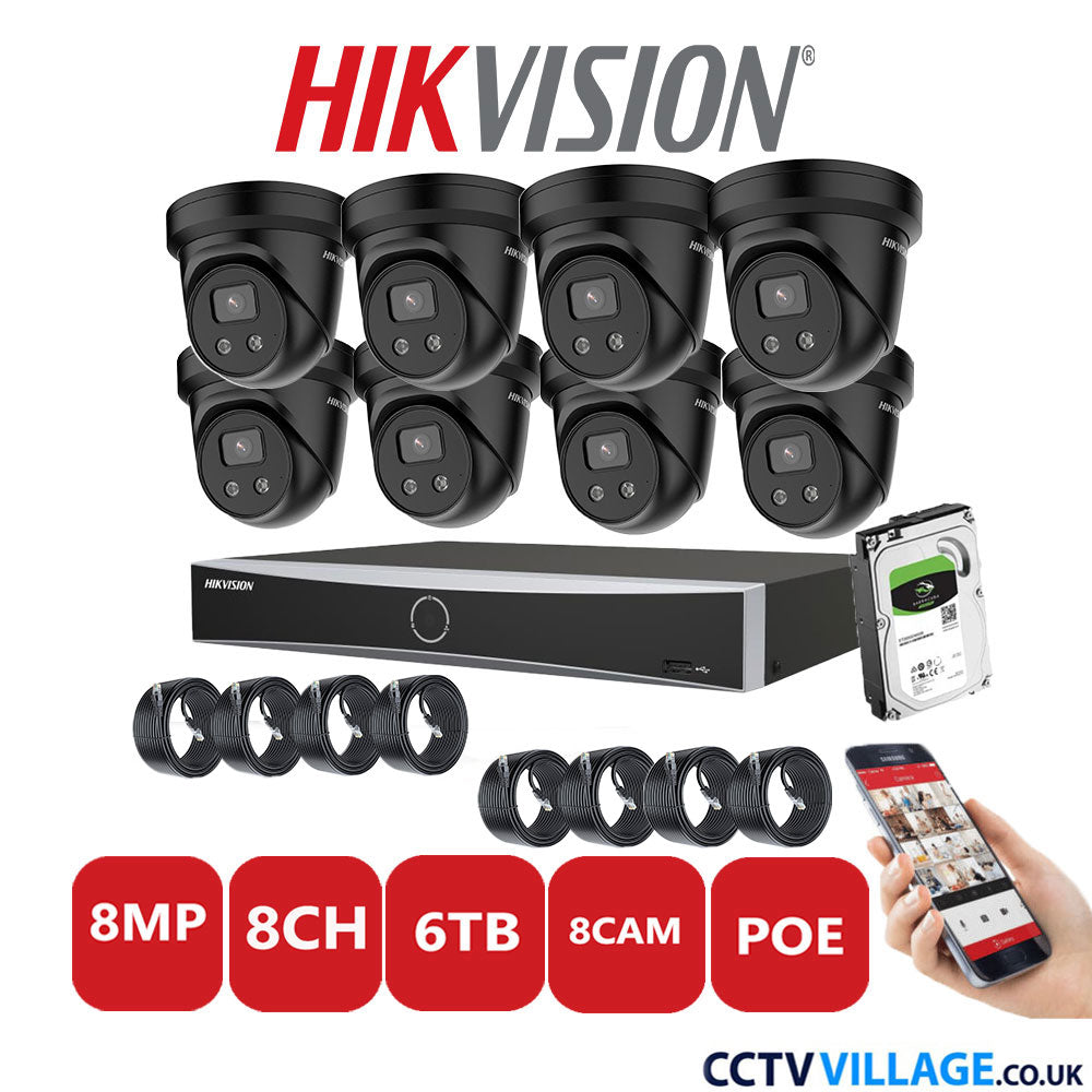 8x Hikvision 8MP cameras in Black (DS-2CD2386G2-IU)