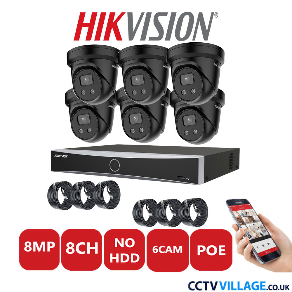 6x Hikvision 8MP cameras in Black (DS-2CD2386G2-IU)