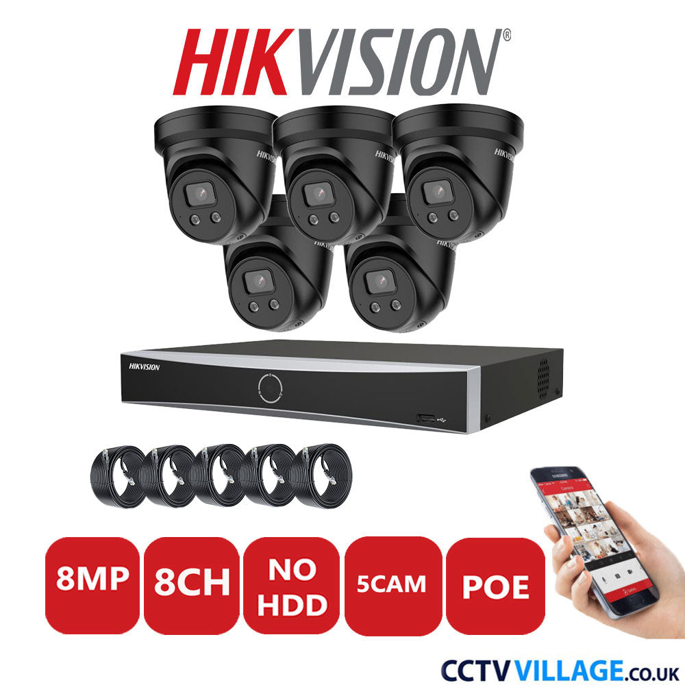 5x Hikvision 8MP cameras in Black (DS-2CD2386G2-ISU/SL)