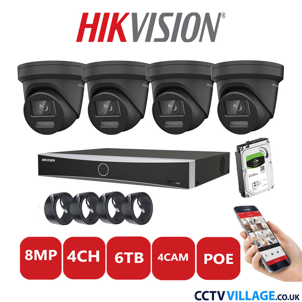 4x Hikvision 8MP cameras in Black (DS-2CD2387G2-LSU/SL)