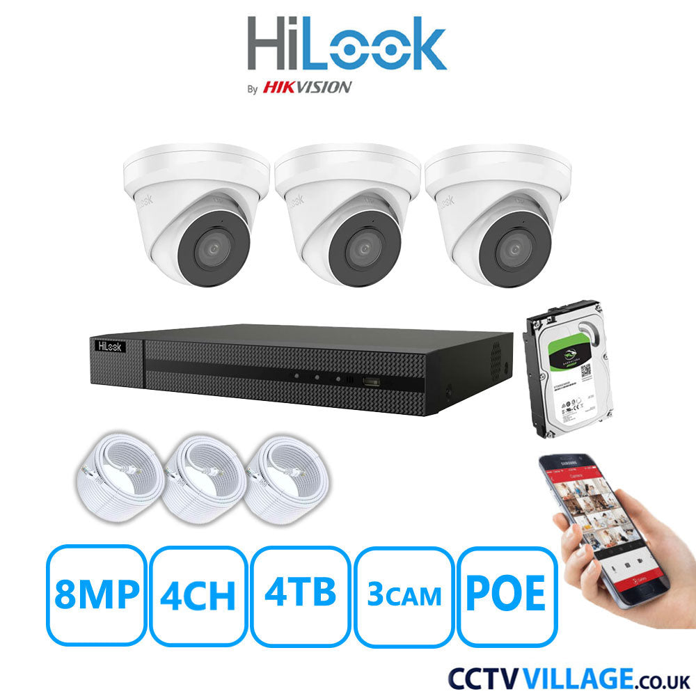 3x HiLook 8MP cameras in White (IPC-T280H-MUF)