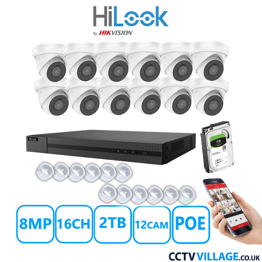 HiLook 8MP IP system twelve cameras with audio 2TB