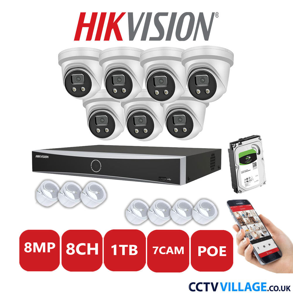 Hikvision 8MP IP system seven cameras with audio 1TB