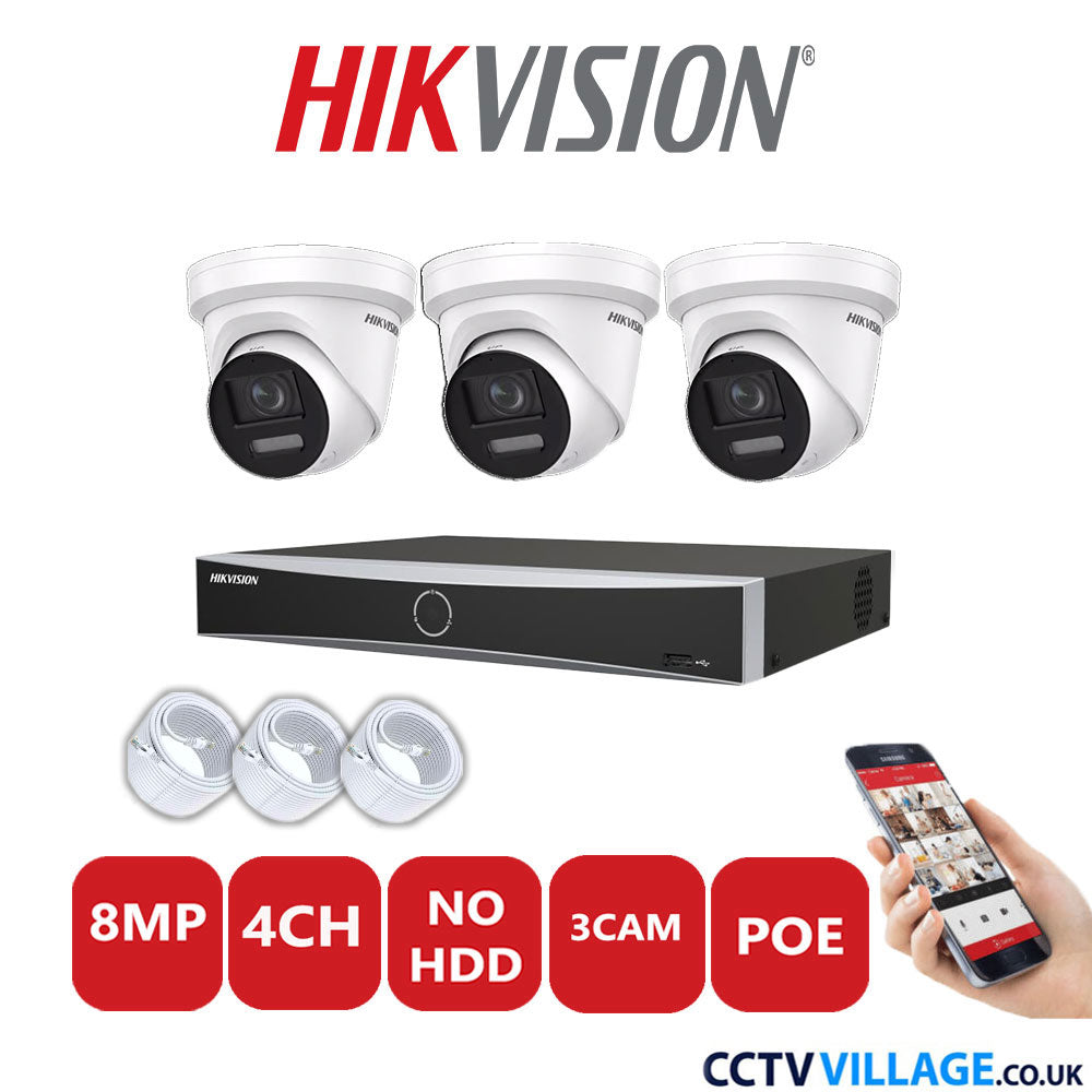 3x Hikvision 8MP cameras in White (DS-2CD2387G2-LSU/SL)