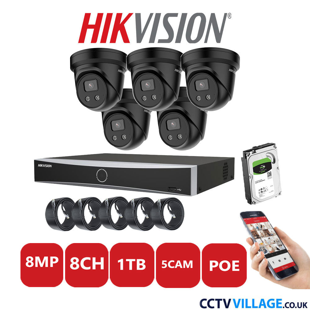 5x Hikvision 8MP cameras in Black (DS-2CD2386G2-IU)