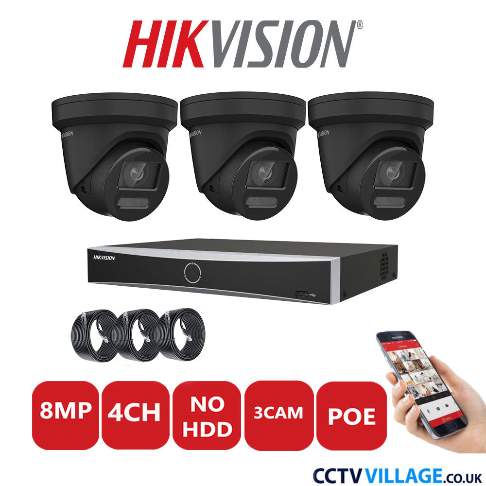 3x Hikvision 8MP cameras in Black (DS-2CD2387G2-LU)
