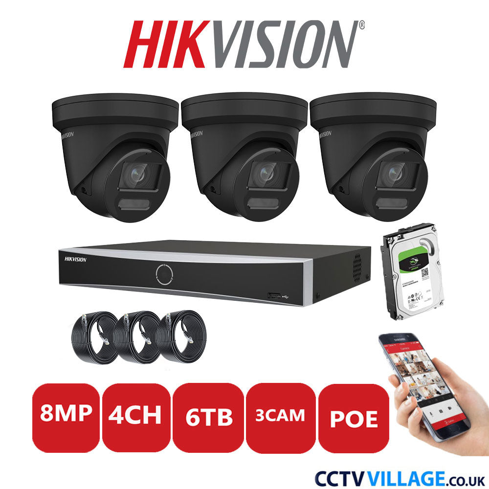 3x Hikvision 8MP cameras in Black (DS-2CD2387G2-LU)
