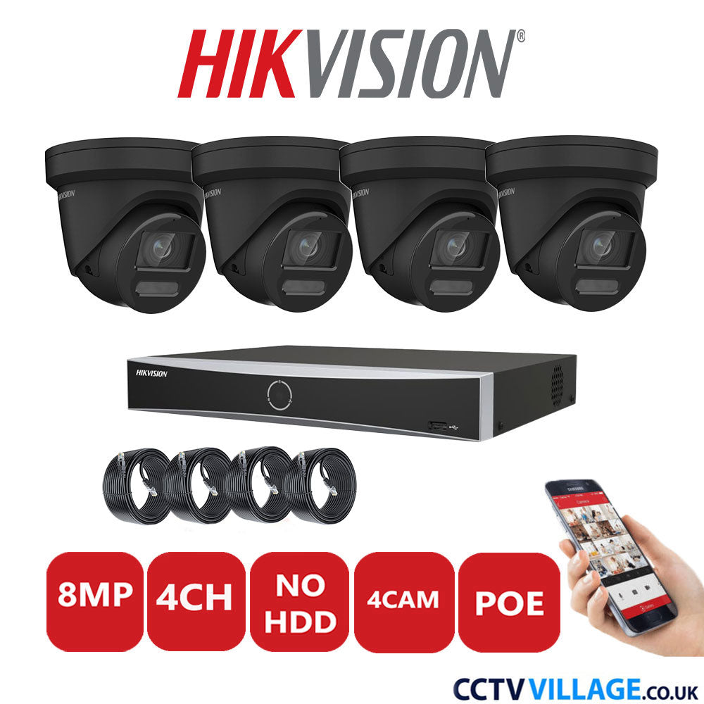 4x Hikvision 8MP cameras in Black (DS-2CD2387G2-LU)