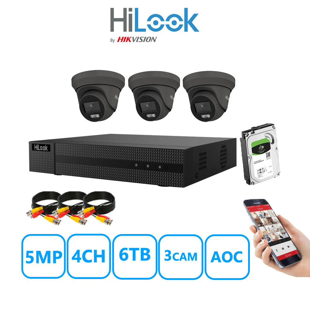 3x HiLook 5MP cameras in Grey (THC-T259-MS)